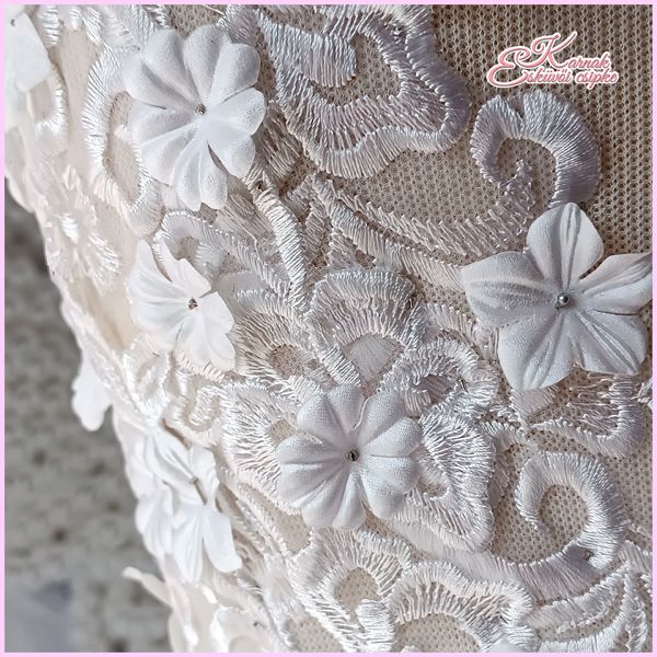 • Míg a hagyományos csipkék lapos felületet kínálnak, addig a 3D-s csipkevirágok: Dimenziót és mélységet adnak a ruhának