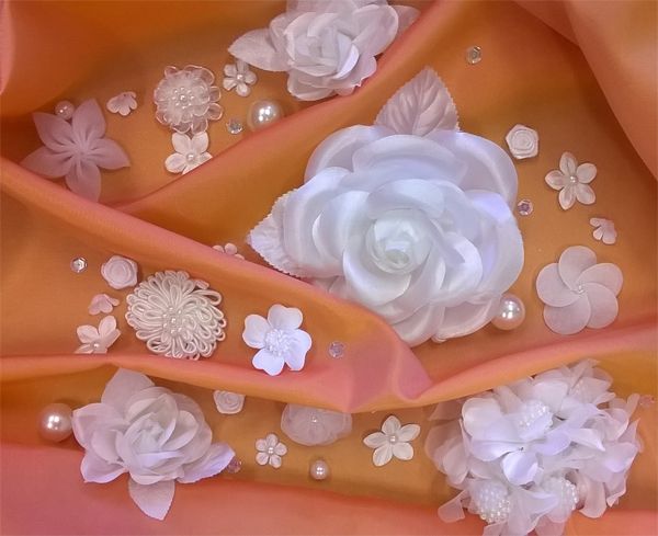 Az organza virágok légies, áttetsző hatást keltenek, miközben formájukat tökéletesen megtartják. Ideális választás, ha egy könnyed, romantikus megjelenést szeretnél elérni.