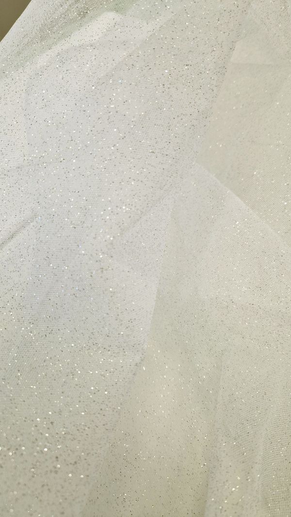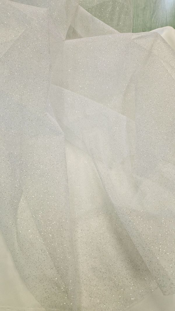 Bemutatjuk varázslatosan szép, jó tartású 300 cm széles törtfehér csillámos fátyol tüllünket. Ez a különleges anyag káprázatos csillogást ad az esküvői és alkalmi ruháknak.